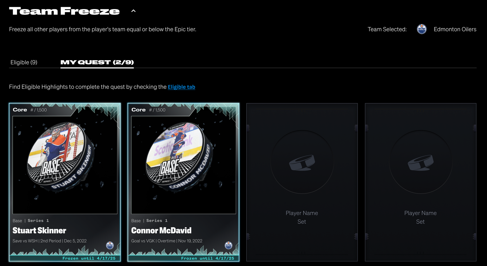 All of the eligible highlights in your collection that are required for the Team Freeze requirement will appear in the Eligible tab.