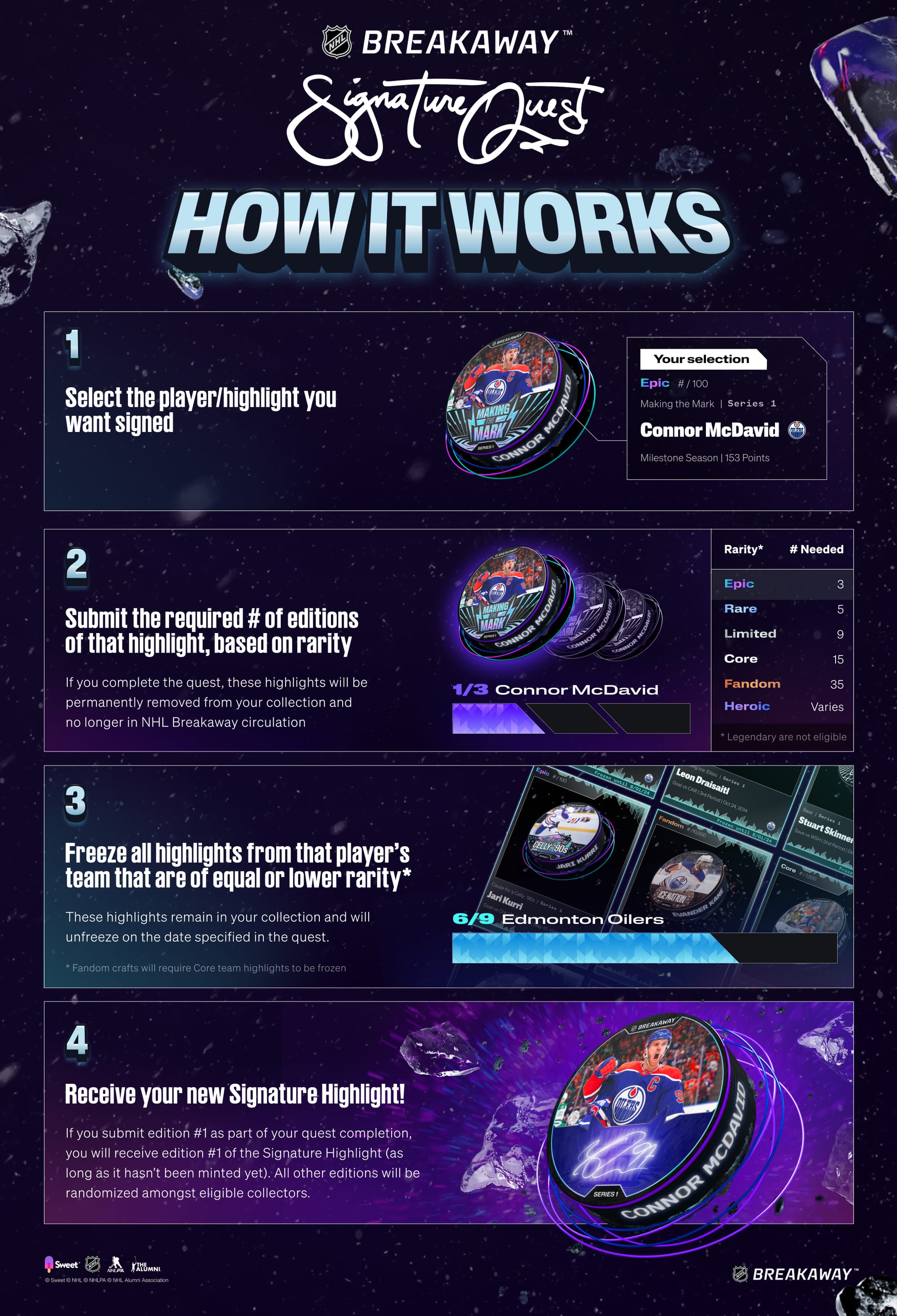 The heroic collectors of NHL Breakaway now have a new quest to undertake as iconic highlights from Connor Bedard, Auston Matthews, Sidney Crosby, Brett Hull, Nathan McKinnon, Jonathan Toews, and many more will be available to craft for the first time. With so many #1 editions on the line, what choice will you make for your next Signature Highlight?