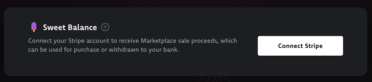 When you sell collectibles in the Marketplace, proceeds go to your Sweet Balance, which can then be used to make purchases from the Drops page or Marketplace; or can be withdrawn to a connected Stripe account.